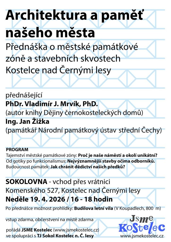 Srdečně Vás zveme na přednášku vedenou vzácnými hosty: PhDr. Vladimír Mrvíkem, PhD. a ing. Janem Žižkou. Proč je naše náměstí unikátní? Nejvýznamnější stavby očima odborníků. Jak chránit dědictví našich předků?