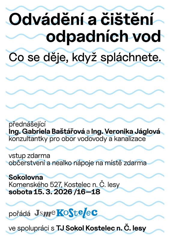 Také Vás trápí, že v Kostelci nemáme dostatečnou kapacitu čistírny odpadních vod a plně kanalizované město? A Svatbín je na tom ještě hůř. Přijďte na veřejnou debatu v neděli 15. března od 16:00 do Sokolovny. Vstup zdarma.